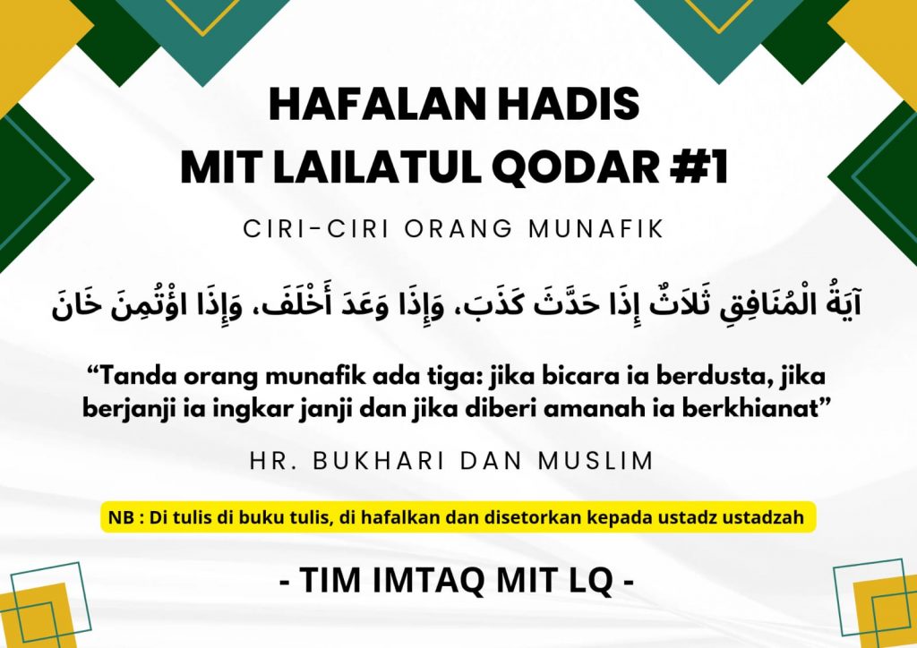“Tanda-tanda orang munafik ada tiga, yaitu (1) ketika berbicara ia dusta, (2) ketika berjanji ia mengingkari, dan (3) ketika ia diberi amanat ia berkhianat).