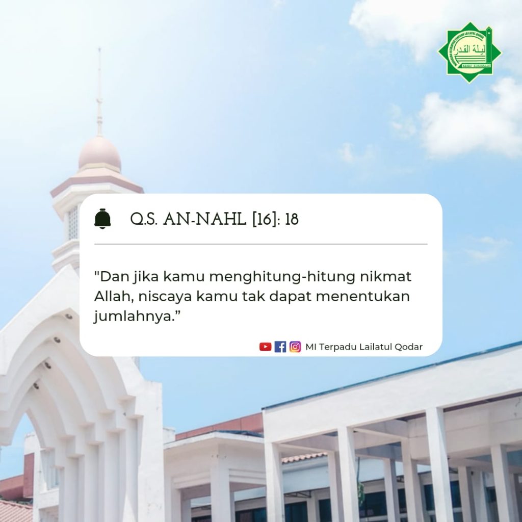 Jika kamu menghitung nikmat Allah, niscaya kamu tidak akan mampu menghitungnya. Sesungguhnya Allah benar-benar Maha Pengampun lagi Maha Penyayang. (QS. An-Nahl :18 ).